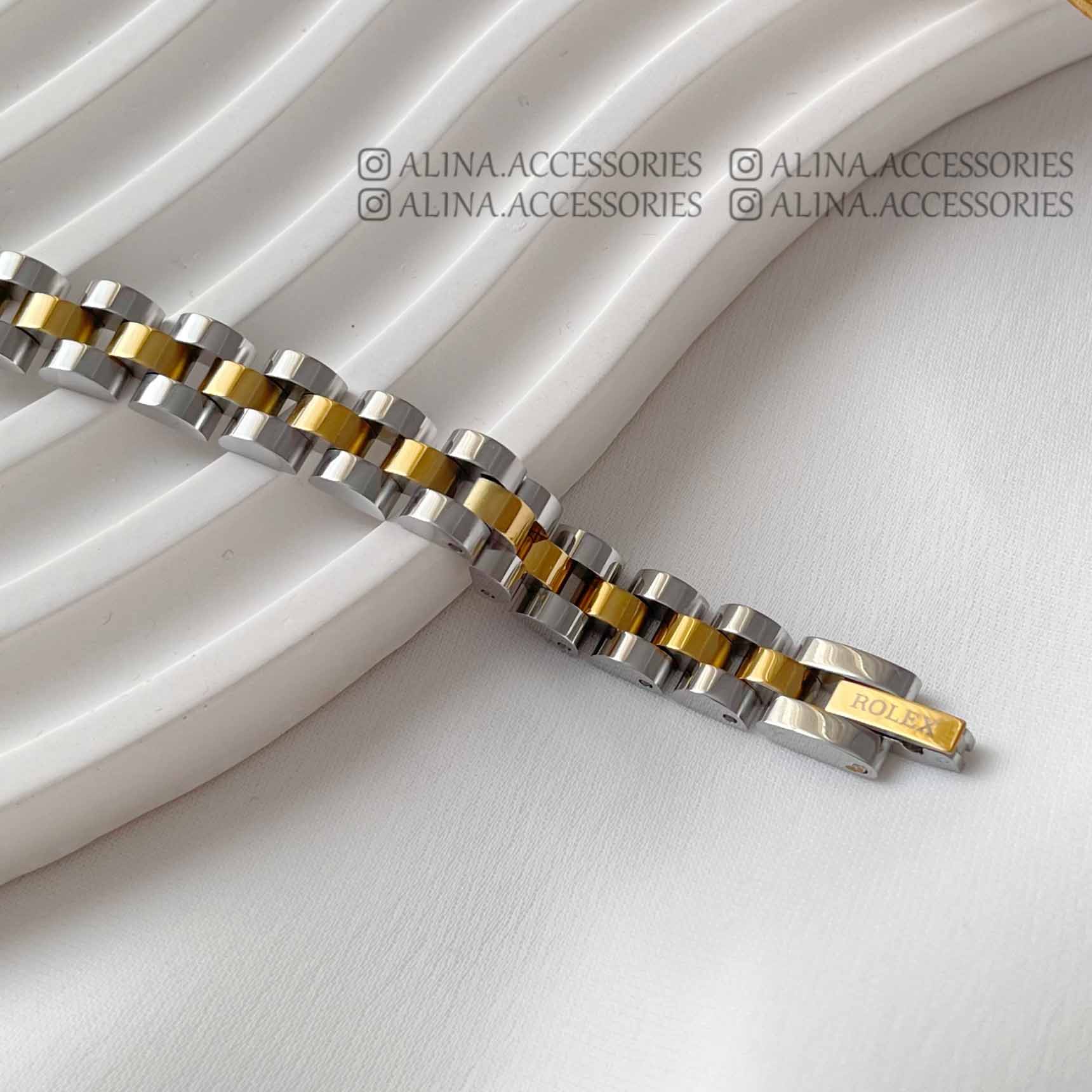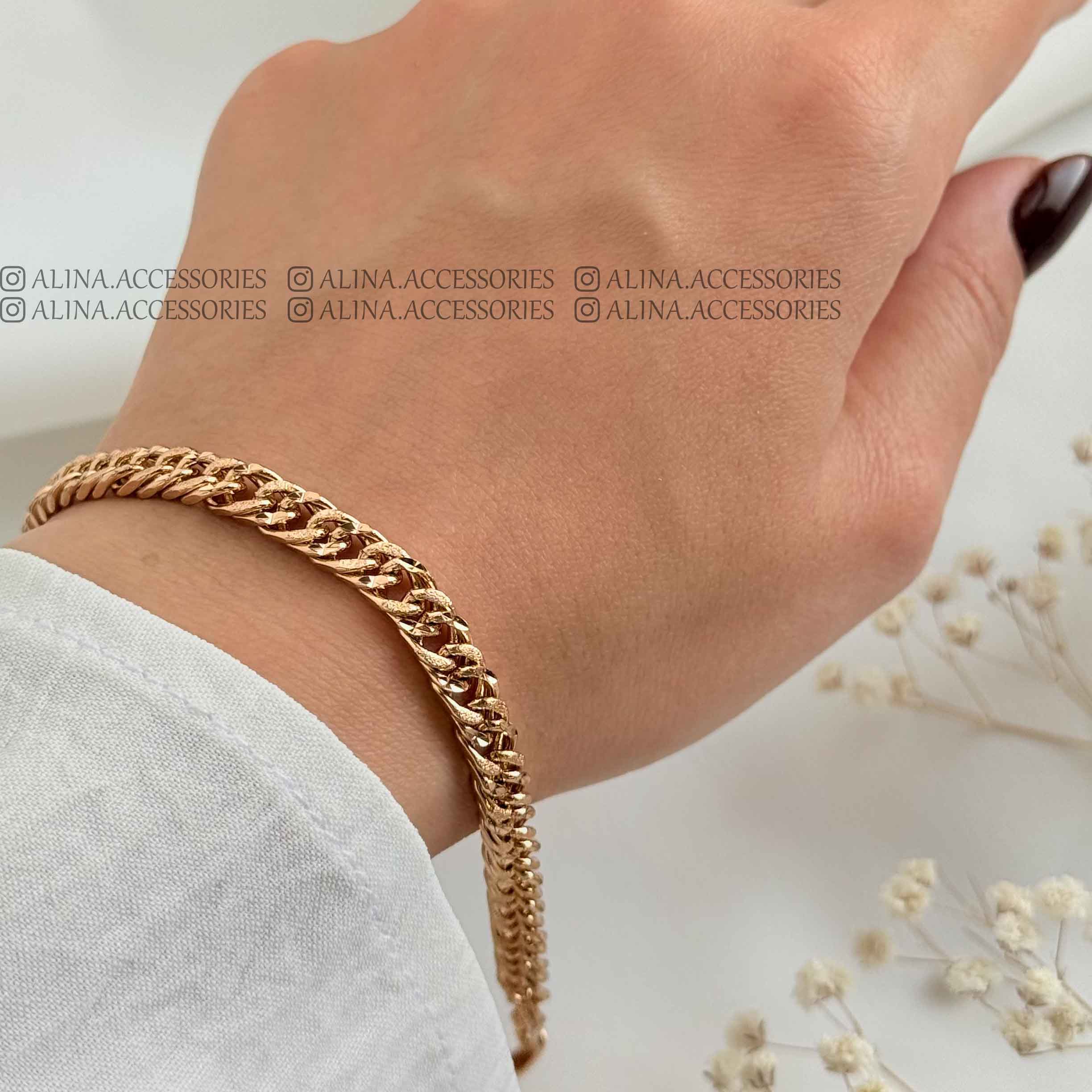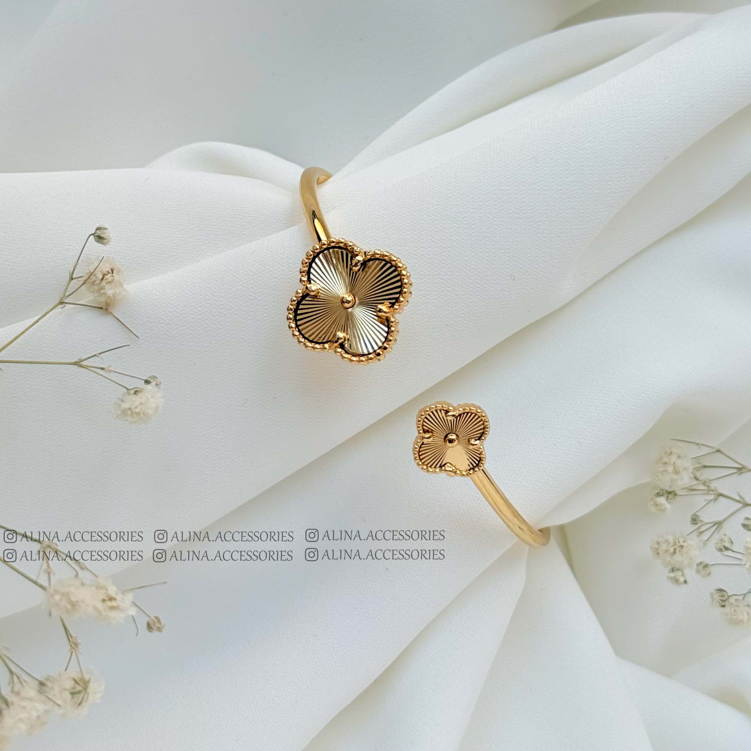 دستبند 2 رو ونکلیف تراشدار طلایی استیل
