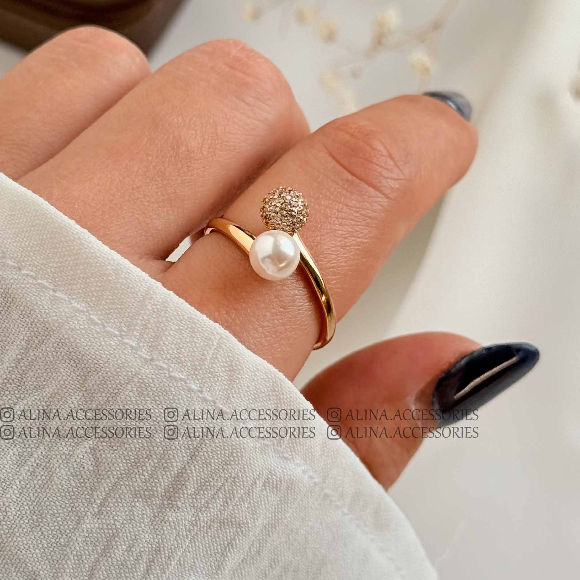 انگشتر دو گوی مروارید و نگین ژوپینگ