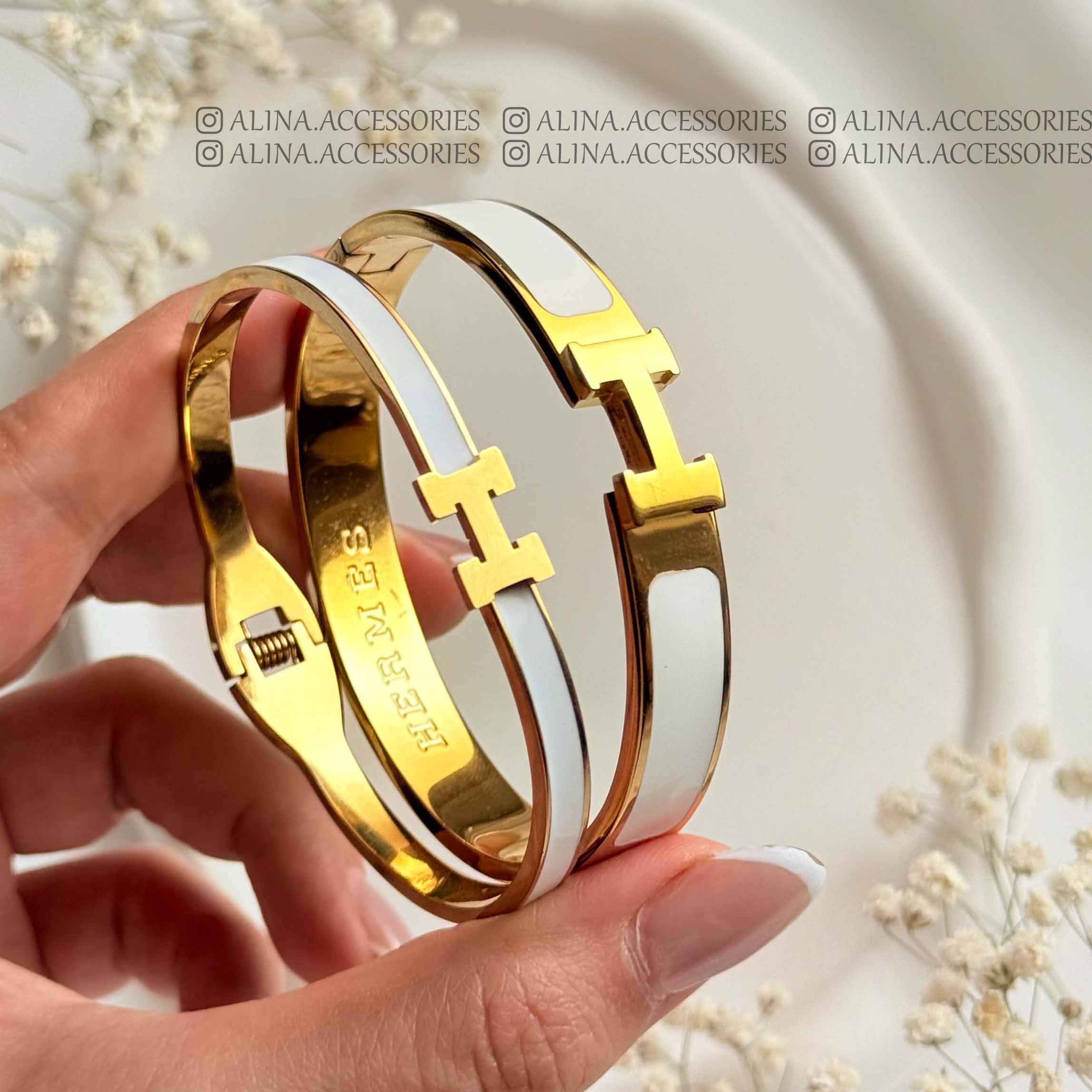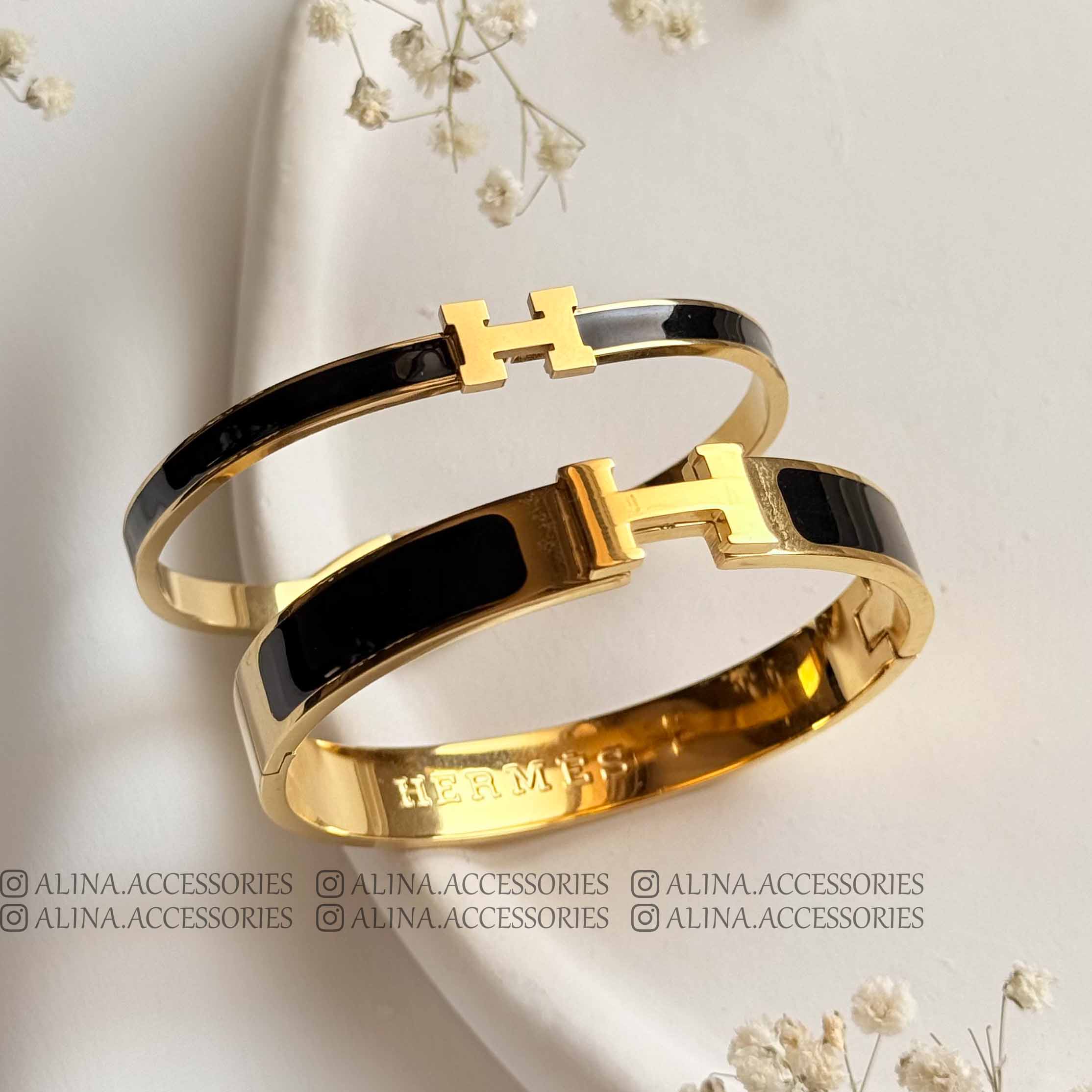 دستهبندی: بنگلقطر داخلی: 60 mmرنگ بندی: سفید-مشکی-شکلاتیمیل: 9میل و 4 میلجزئیات: حک برند هرمس و ساخت فرانسه داخل بنگل