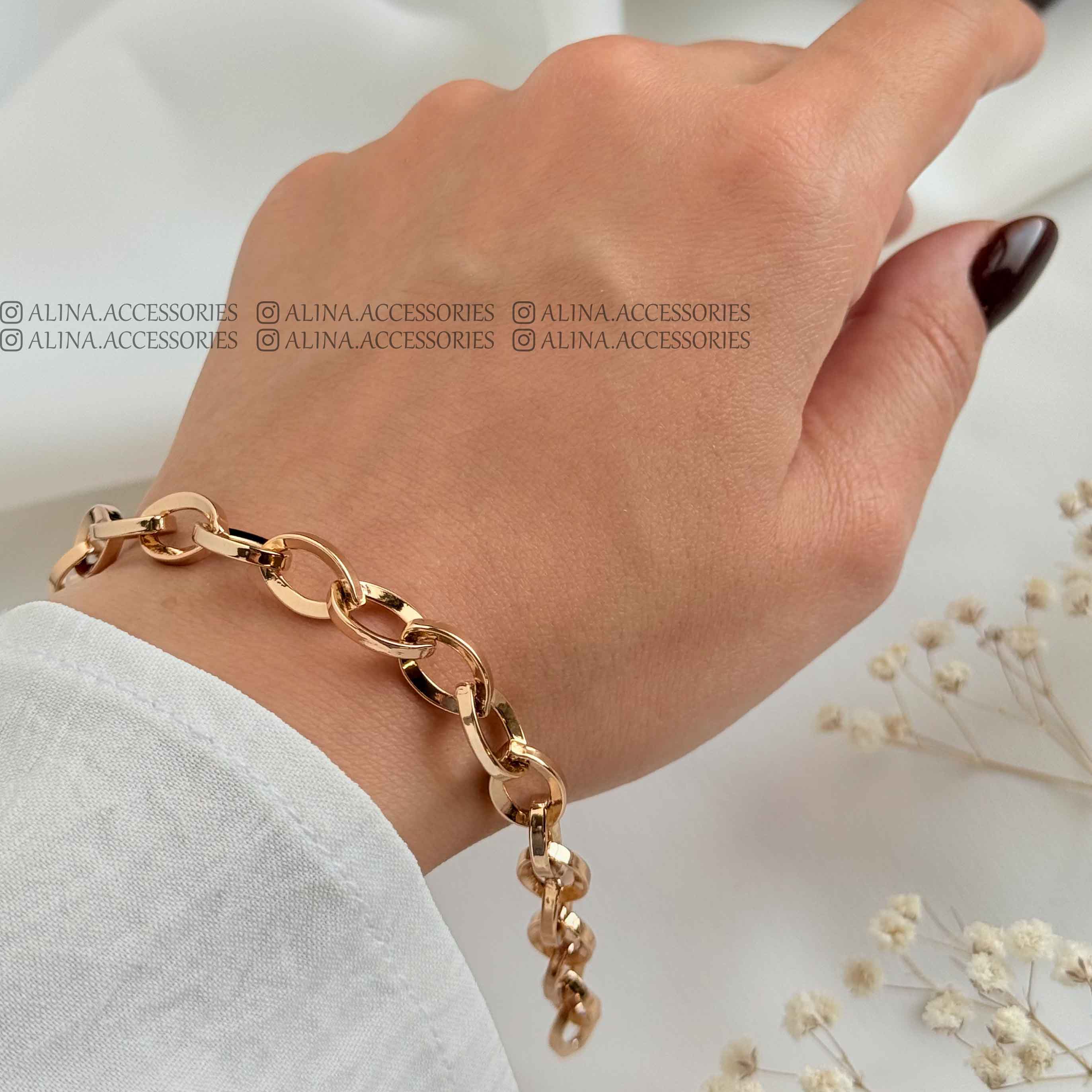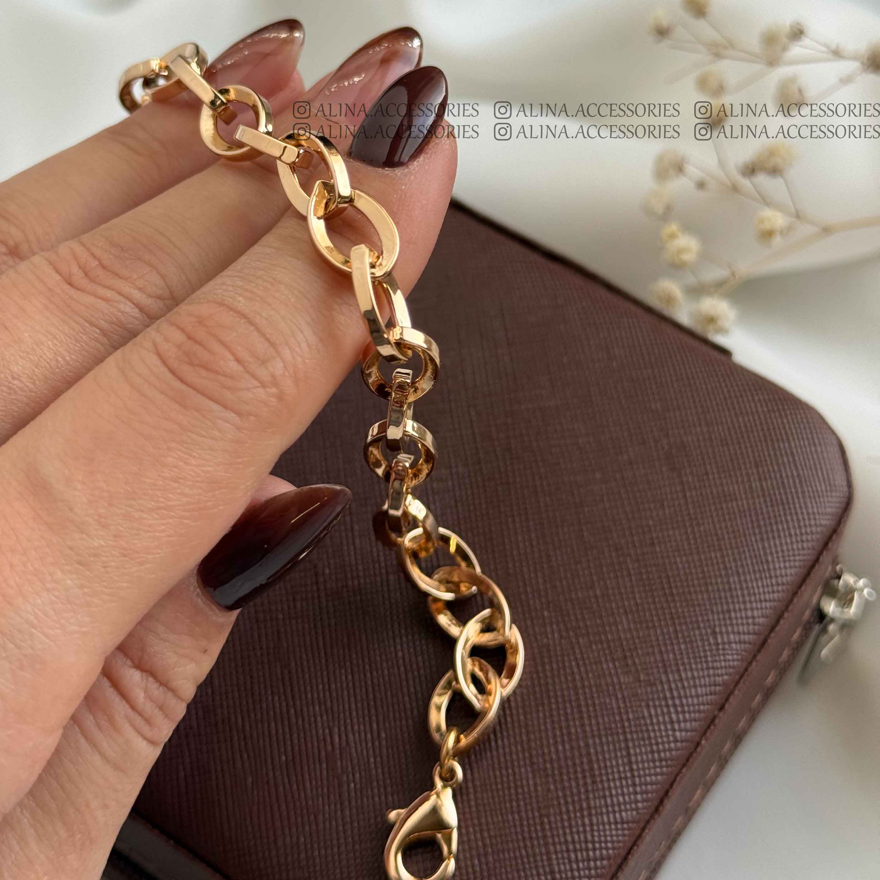 دستهبندی: دستبندطول: 20 سانترنگ: طلاییجزئیات: روکش آبکاری طلا 18 عیار- رنگ ثابت و ضدحساسیت -حک برند ژوپینگ