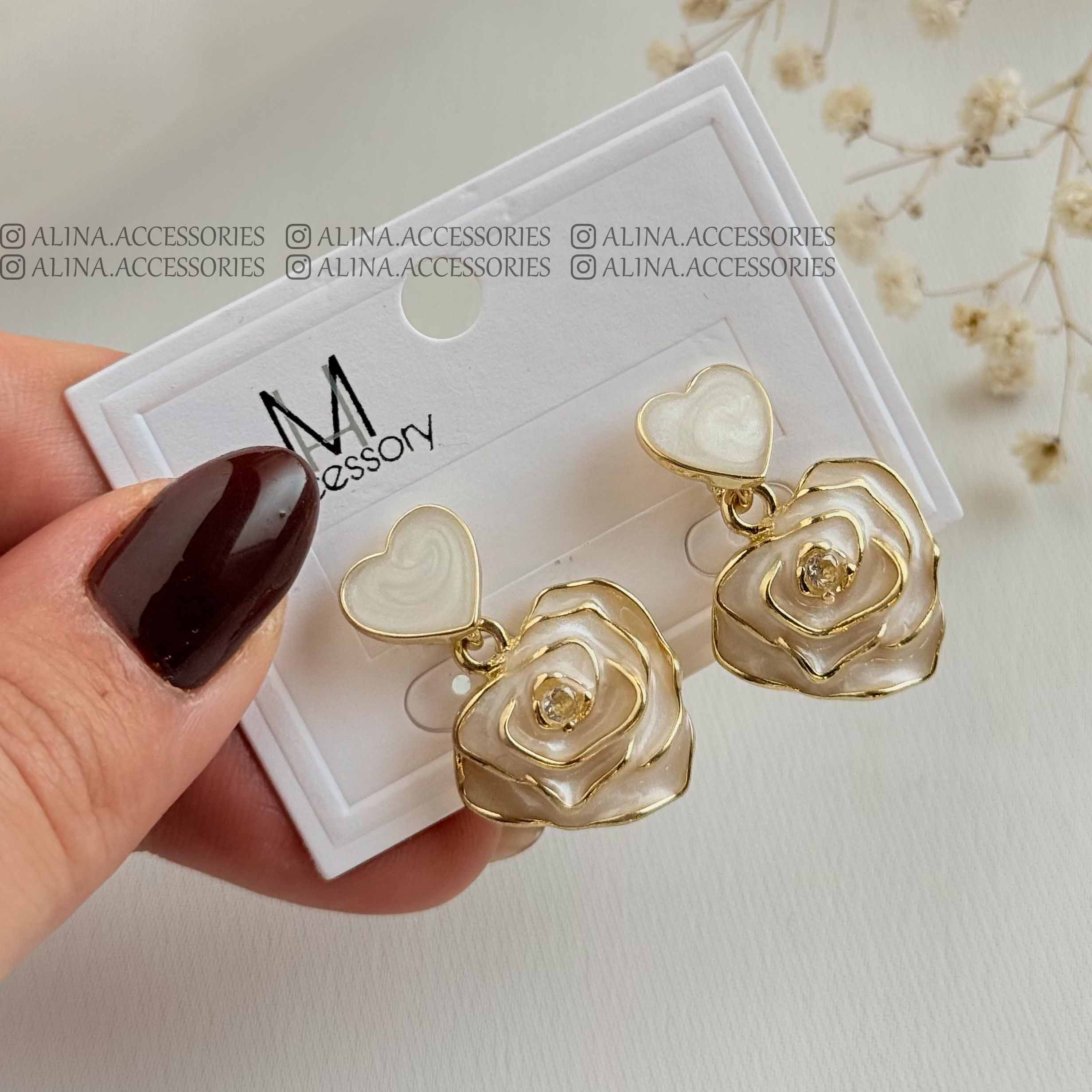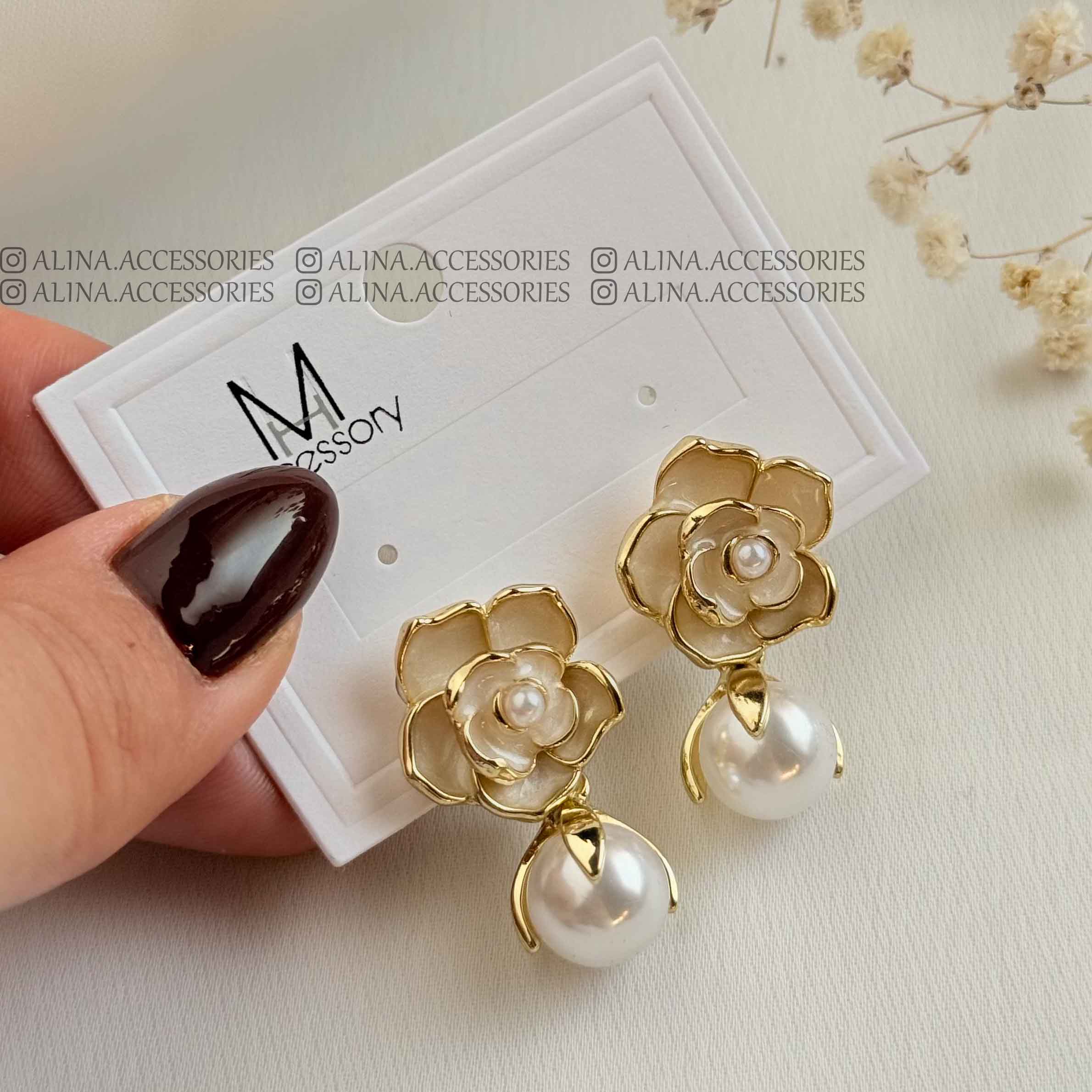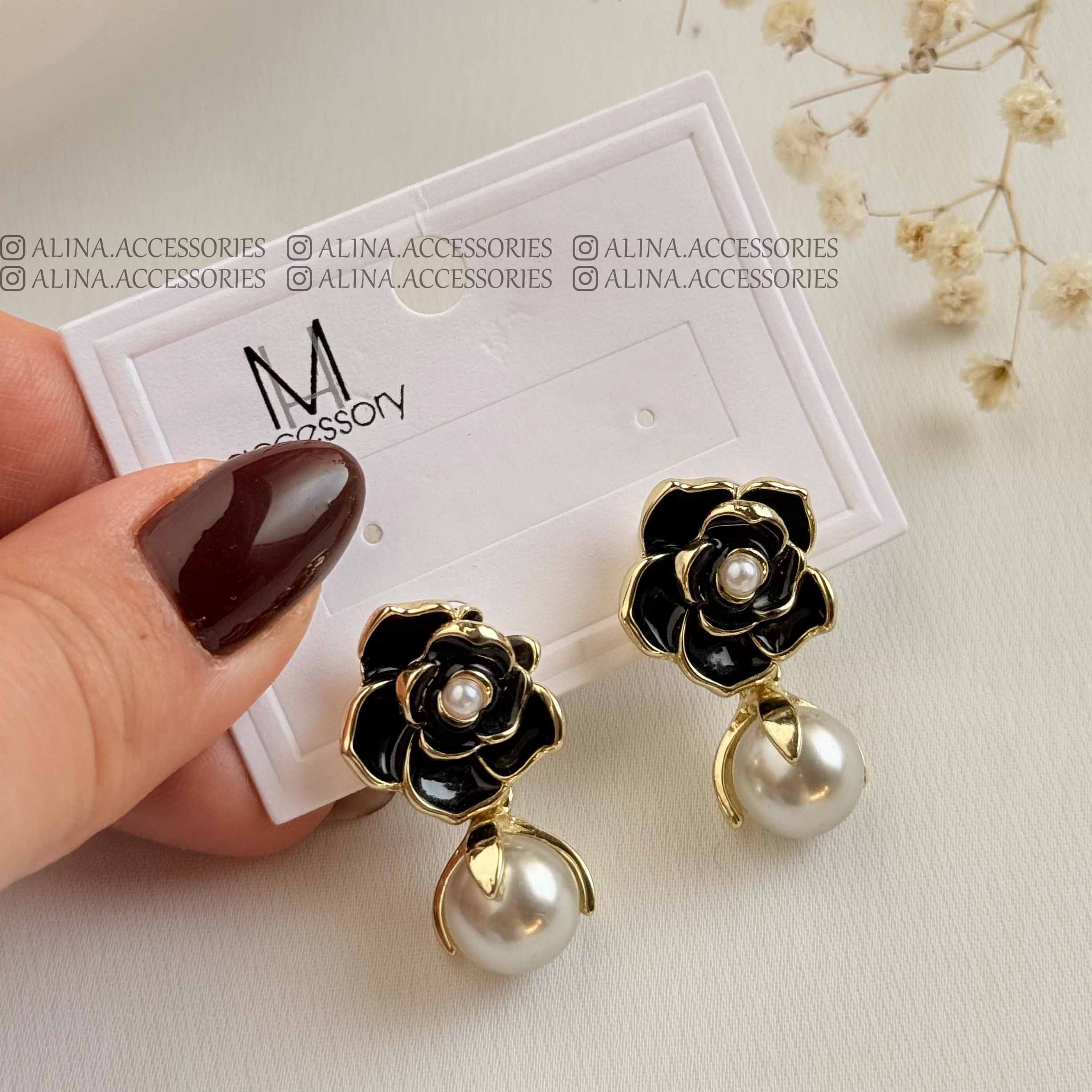 کالکشن گوشواره میخی گل و مروارید میناکاری